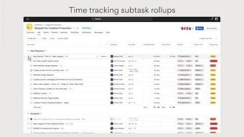 One problem I see many businesses struggle with is keeping track of time across tasks and subtasks. With Asana’s new time tracking task and subtask rollups feature, you can now keep an eagle's eye view on the estimated time for each task in the timeline and list view. When subtasks are expanded in list view, both the parent tasks and subtask's Actual time and Estimated time values are displayed separately. If subtasks are collapsed, the subtask's Actual time and Estimated time values are rolled up and added to the parent task values. How convenient!