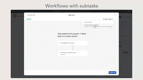 First, the 'Rules' feature is now applicable to subtasks. This means you can automate workflows that rely on subtasks.